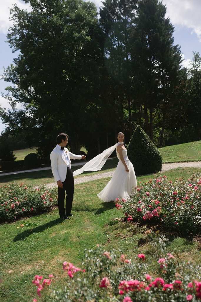 The festivities kicked off with a champagne fountain right in front of the château steps, a total wow moment. The table was draped in soft ruffles, bubbles sparkling in the sunlight… we clinked glasses, laughed, shared little stories. Between heartfelt speeches and that super relaxed vibe where everyone just hangs out and enjoys the moment, it was exactly what they wanted: elegant, easygoing, and of course, with plenty of champagne.
